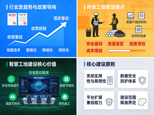 在数字化转型浪潮席卷全球的今天,传统建筑业正面临一场深刻变革。工地管理如何从“人防”转向“技防”,如何实现安全、质量、进度、成本与环保的协同提升,已成为行业发展的核心命题。随着建筑行业的快速发展和数字化转型的深入,智慧工地已成为提升项目管理效率、保障施工安全、提高工程质量的重要手段。