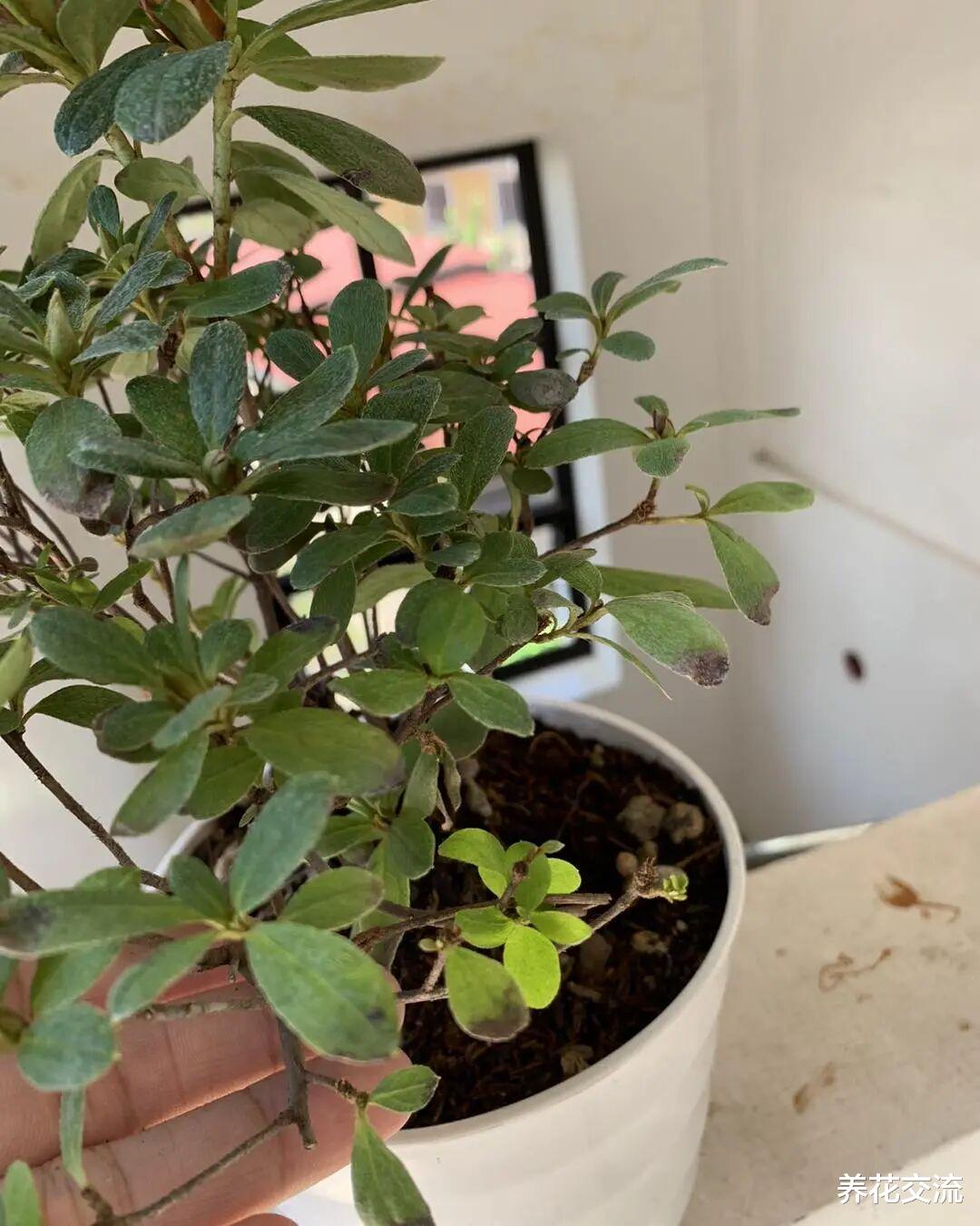 处理办法就是尽量把这些盆栽杜鹃原盆养护,放在通风、光线明亮且没有直射光的位置养一两周,盆土干了再浇透。这个时候不要换盆、不要施肥,可以套在其他盆里养护,并且要增加周围的空气湿度和环境通风。