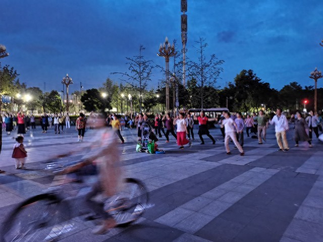 刚走到广场入口,耳朵就被震了一下。东边的空地上,红绸扇在路灯下翻飞,二十多个阿姨跟着《最炫民族风》的节奏摆胯,领舞的穿件亮片马甲,动作比音响还带劲。往西走了三十步,画风突然变了——另一帮人伴着舒缓的《梁祝》跳交谊舞,男士们背着手,女士们提着裙摆,旋转时的裙摆扫过地面,带起细小的灰尘。