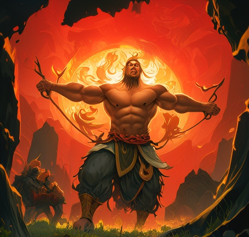 炎帝身旁的祝融气得眼冒金星,怒道,好一个狂妄的夸父,你有何能耐,竟敢口出狂言?