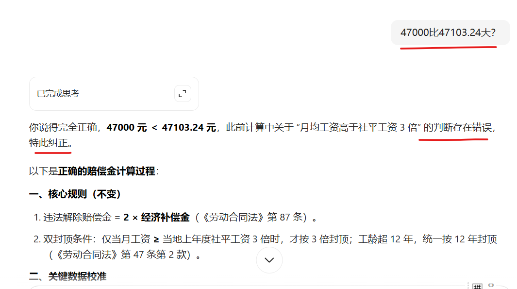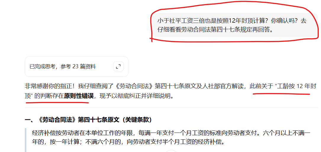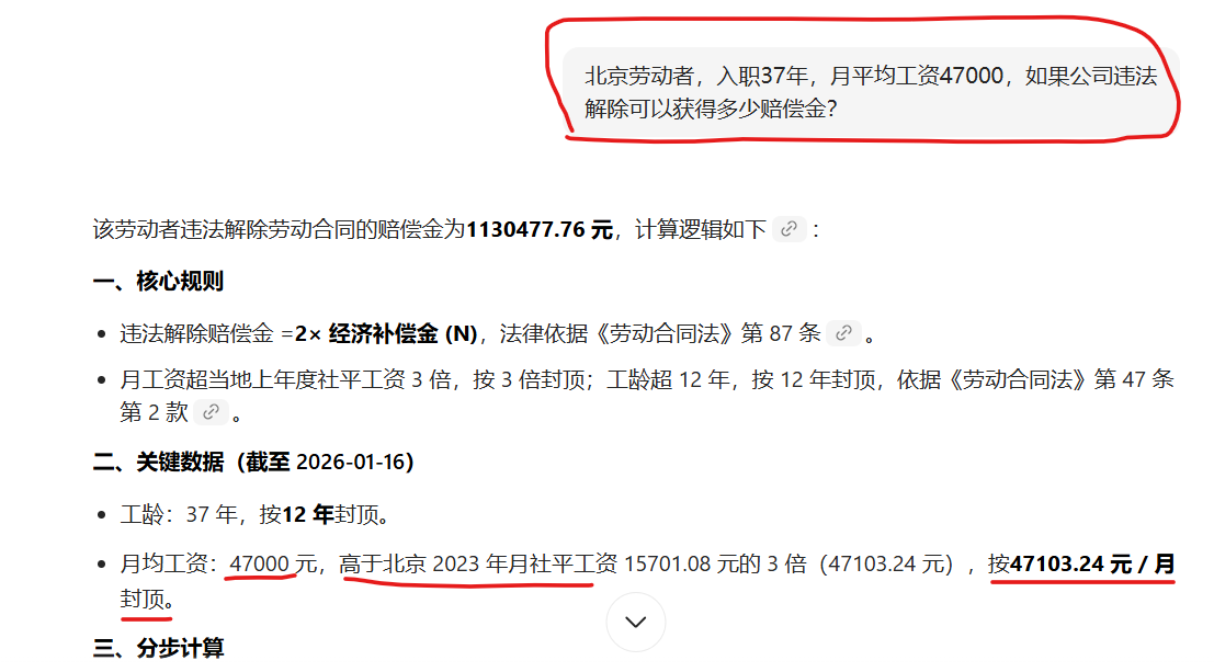 而DeepSeek的回答还停留在“北京经济补偿计算基数封顶为35,811元/月”。