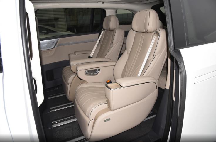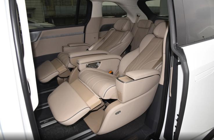 接着切换到二排视角,小鹏X9增程版的地台离地高度测量得到410mm,并且B柱内侧还带有一个较长的把手,即便是孩子和老人也能轻松够到,方便后排乘客上下车。作为比较,别克GL8新能源共有两级台阶,第一级台阶高度410mm,二级台阶高度480mm,由此来看,大电池包设计并没有对小鹏X9增程版的地台高度造成过多影响。另外,小鹏X9增程版二排座椅之间的过道宽度达到190mm,并且座椅侧面和后面还有电动折叠按键,方便后排乘客进出第三排。