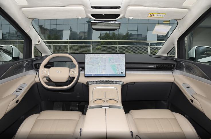 座舱内部,小鹏X9增程版的布局风格和纯电版基本一致,均提供17.3英寸中控屏+10.25英寸液晶仪表,其中方向盘和车窗控制拨杆造型经过细微调整,设计感更为简约。重点来看方向盘,整体轮廓和握感并没有多少变化,主要是将小鹏LOGO移动到中央,并且两侧多功能按键设计简洁,底部增加智能辅助驾驶开关和能源模式切换按键,日常驾车出行相对顺手。另外,AR-HUD抬头显示为小鹏X9增程版新增配置,支持车道级导航融合SR环境显示,倒车影像也可以同步显示,方便驾驶者在驾车过程中获取环境信息。