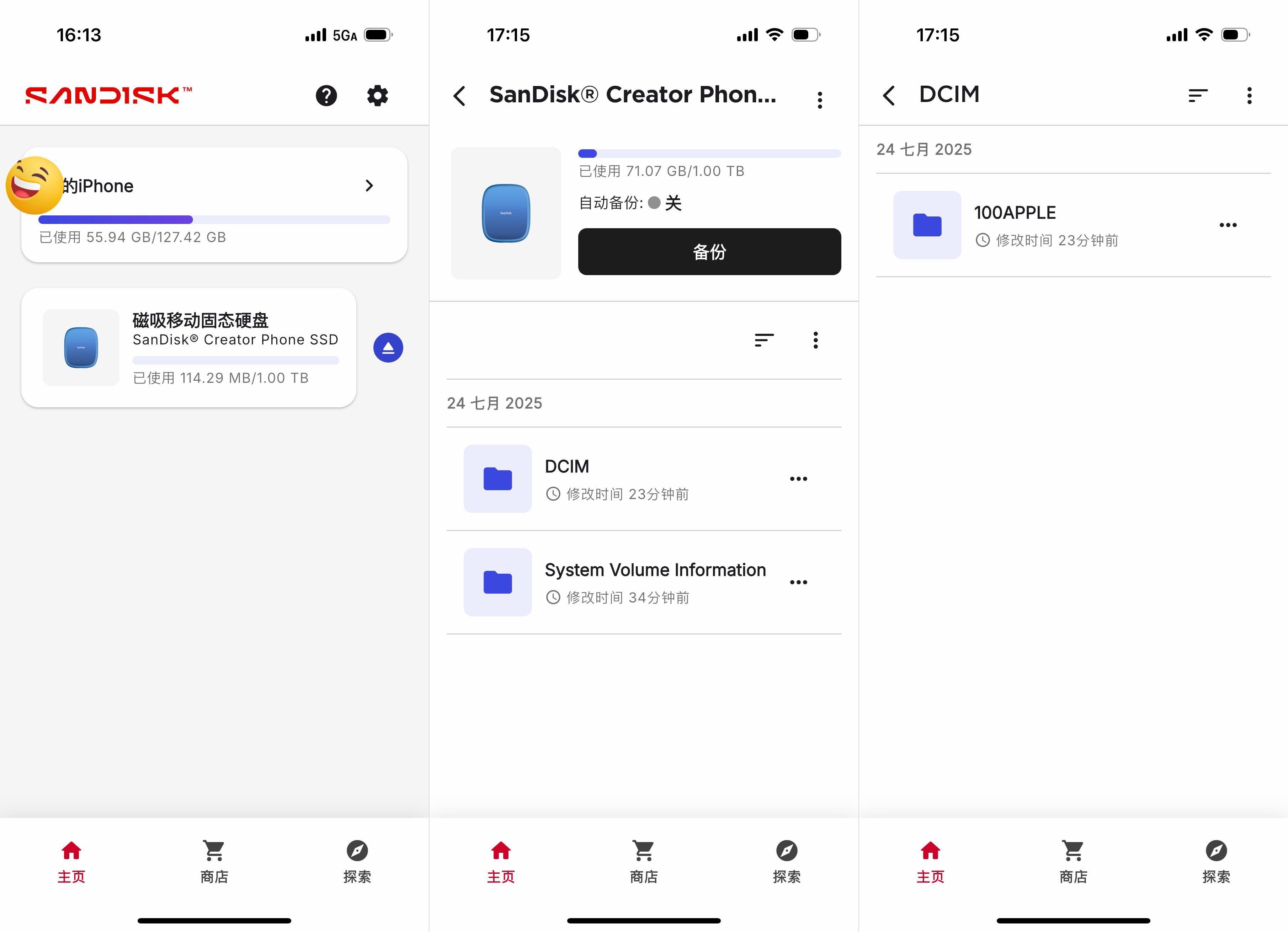 以ZAEKE知客手上的iPhone16 Pro为例,首次插上闪迪创作者系列磁吸手机移动固态硬盘会弹窗提示下载闪迪 Memory Zone应用,安装后连上就能化身外置存储,实现无缝备份和浏览管理数据文件。如果插上没反应,可能考虑是产品格式的问题,可以先在PC端格式化硬盘,呈exFAT格式就行,即开即用。