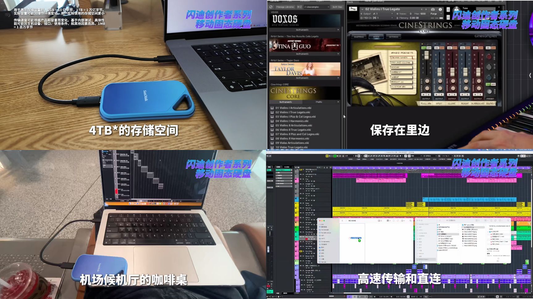闪迪创作者系列移动固态硬盘在真实创作场景中的表现,同样体现在专业编曲人@欧阳箐宇OY_Music的使用分享中。编曲创作早已不局限于录音棚,无论是在飞驰的高铁上捕捉灵感,还是在咖啡馆细调音色,闪迪创作者系列移动固态硬盘始终是他创作装备中的关键一环。超大容量,轻松容纳海量音源素材;疾速读写,支持直接在盘内运行复杂音轨工程;卓越的可靠性,即使在多变的移动环境中,也无需担心意外磕碰带来的风险。