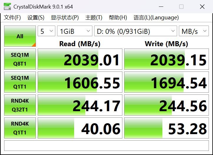 进入性能测试环节,测试平台为Windows平台,连接接口为USB4接口(40Gbps)。