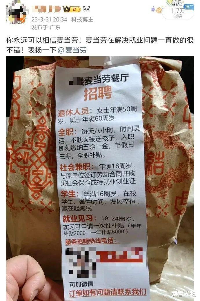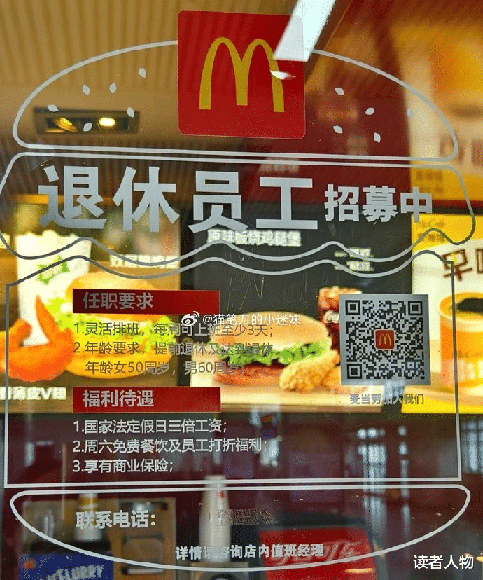 有网友发现,麦当劳门店张贴着这么一则招聘启事: