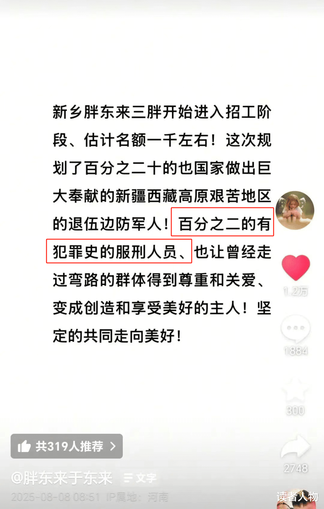 招聘退役军人可以理解,招聘“劳改犯” 不禁让人打起了大大的问号。