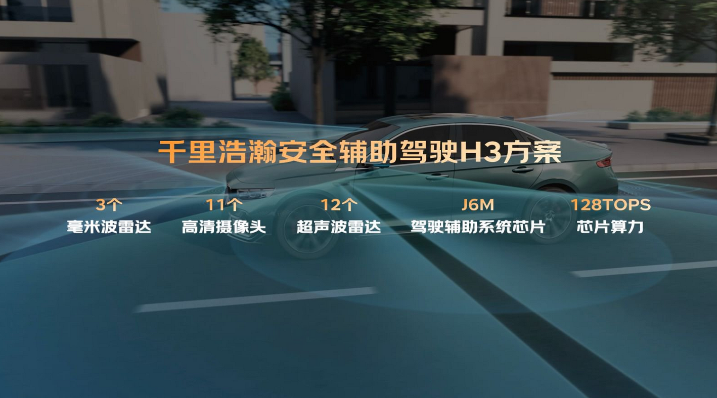 尤为值得一提的是,新车搭载的“千里浩瀚辅助驾驶H3方案”,通过11个高清摄像头、3个毫米波雷达、12个超声波雷达以及高算力芯片的组合,构建了360度全方位感知能力,提供了包括高速领航辅助在内的多项智能驾驶功能,让长途出行更加轻松安全。