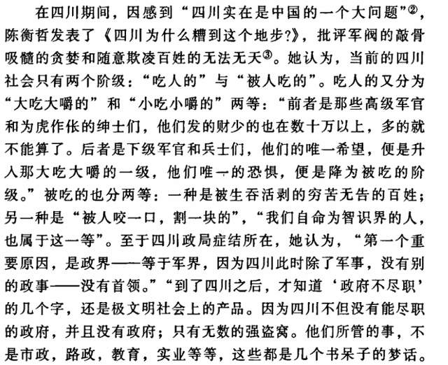 其实早在1922年,陈衡哲夫妇便到过四川,当时陈衡哲就四川的问题现状发表了《四川为什么遭到这个地步?》。