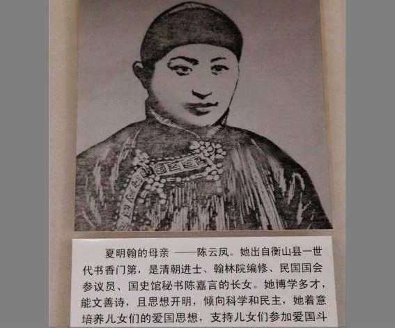 她的姑姑陈云凤,上过私塾,善写诗文,著有《衡阳吟咏》、《严余吟》诗词二卷;18岁嫁给夏绍范成为御赐诰命夫人,儿子夏明翰投身革命,28岁时牺牲!