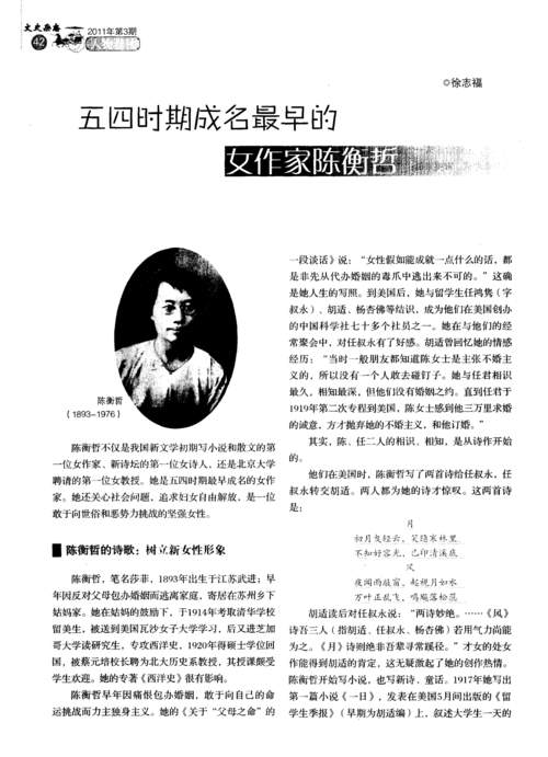 陈衡哲在留学期间还发表过《风》《月》等诗。