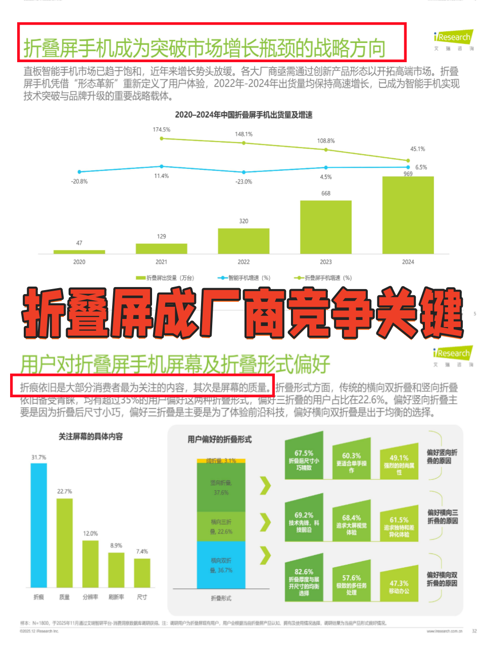 从艾瑞咨询的最新报告也能看出,2022年-2024年折叠屏的出货量都是保持着高速增长的,甚至已经成为智能手机实现技术突破与品牌升级的重要战略载体。
