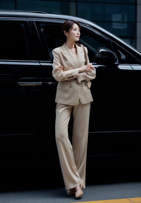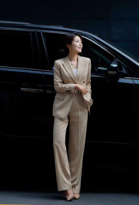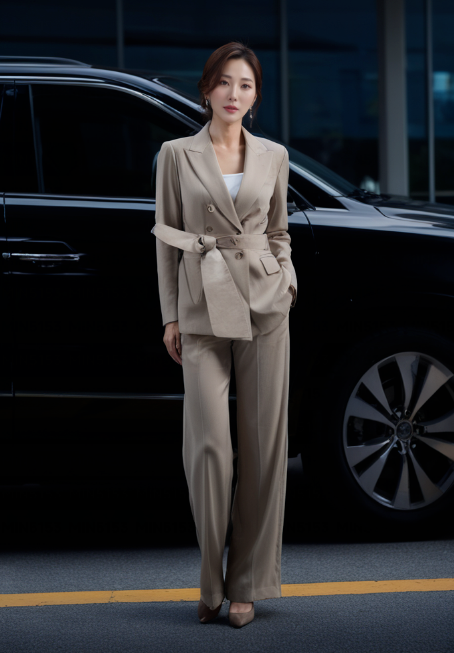 职场通勤穿搭,卡其色简约西装搭配高跟鞋,轻松打造干练气质