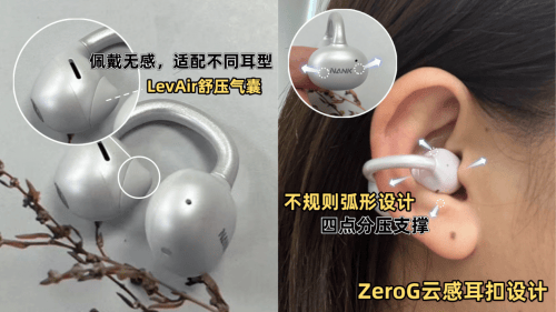 南卡这款ClipSuper2的佩戴结构,可是经过几千次优化才定型的,专门解决了市面上耳夹式耳机“戴久了疼、运动容易掉”的通病。它用的是南卡自研的ZeroG云感耳扣设计,不对称四点弧形支撑能把压力分散开,再加上LevAir零压气囊的微气压缓冲,耳夹的夹持感直接降到最低,贴耳廓又不压耳。单耳才4.8g,轻得跟没戴一样,不管是上班戴一整天,还是运动的时候用,都不会觉得不舒服。连接桥是航空级钛合金骨架加高分子记忆材料做的,能自适应弯折,就算折上万次也不会坏,结构超稳固。就冲这个佩戴的舒适度和稳定性,别说同价位了,就算跟更高价位的比,也完全不输!跑步、骑行、跳绳的时候戴,牢牢贴在耳朵上,晃都不晃一下。