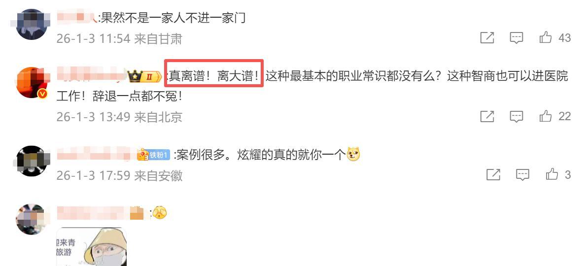 有网友说,这种事情真的是太离谱了,被辞退一点都不冤枉,如果发生医疗事故的话,说不定还得追究其责任,真的是分不清职业权责呀。