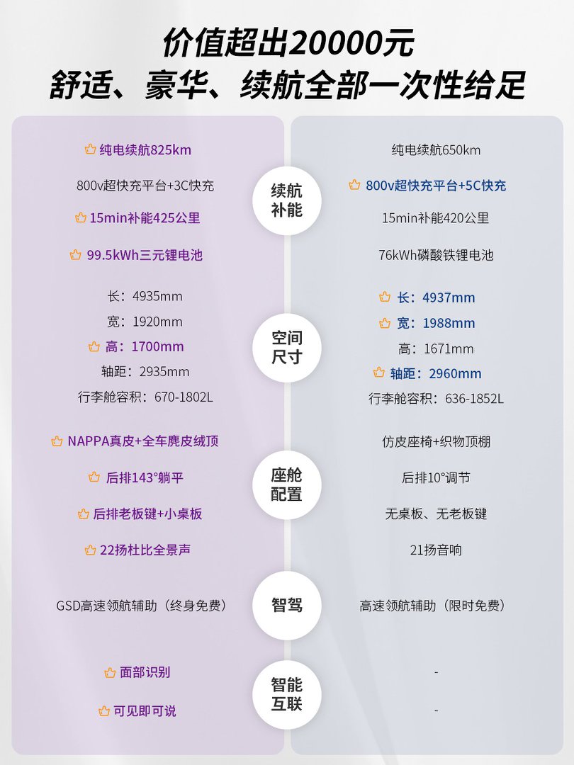 要是你正打算入手一台 20 万左右的大五座纯电 SUV,那可得好好看看昊铂 HT 825 Pro。它和智己 LS6 Pro 终端价就差 2000 元,但带来的价值可不止 20000 元。