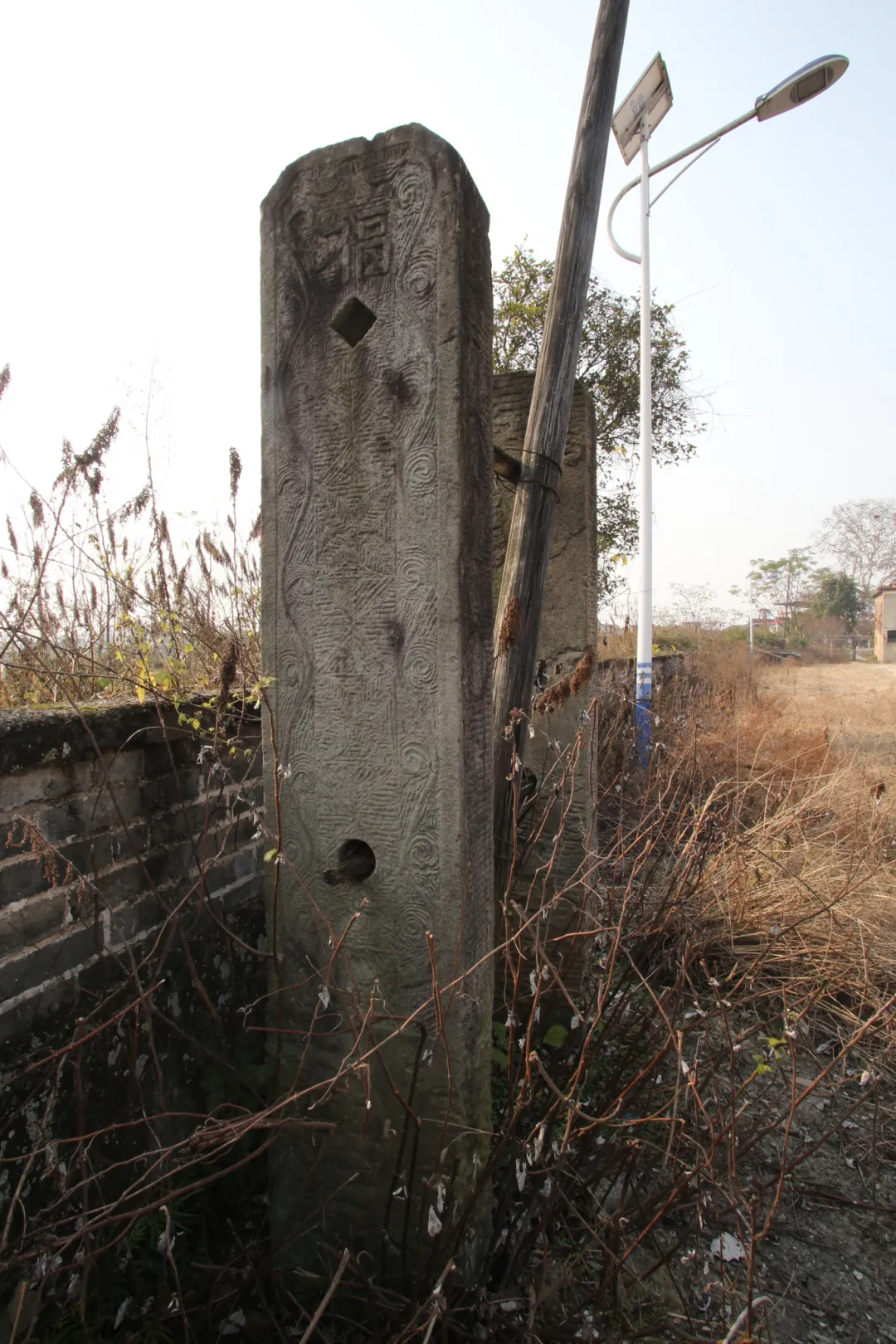 大屋门前,宽敞的晒谷坪上伫立着两根苍老的旗杆夹,隐约可见雕刻的“福”字与祥瑞纹样。程子楷生于清同治十一年(1872年),字嵩生,号忍公,自小聪颖过人,科举中榜后,选为清朝光绪年间的拔贡,光绪二十三年(1897年)被任命为湖北枣阳知县。旗杆夹虽已黯淡隐没,却犹可见当年的功耀荣光。