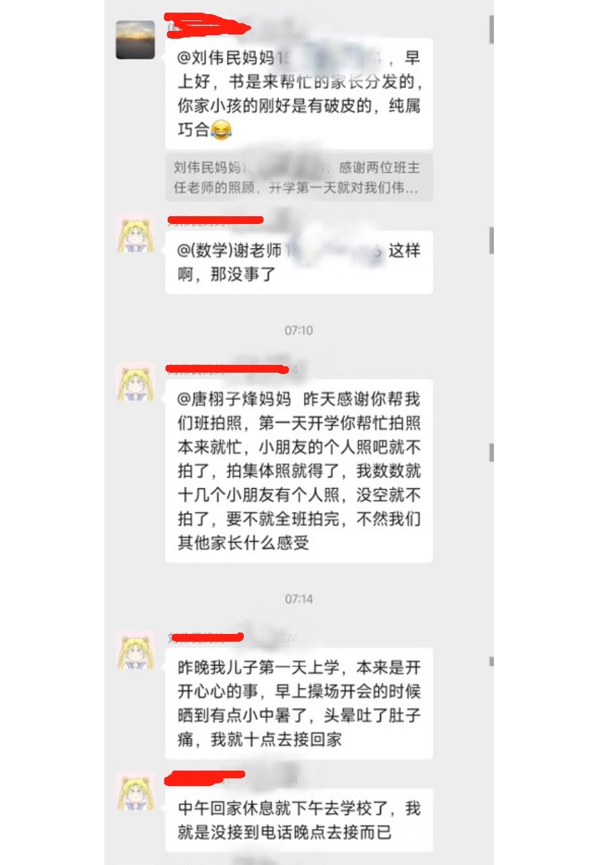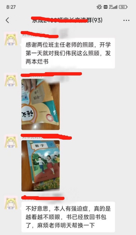 据聊天记录显示,深夜12点20分,刘某在班级家长微信群中突然爆发,怒斥孩子领到的教材竟是破损的,言辞间透露出对校方及老师极大的不满,甚至以讽刺的口吻暗指老师“特别照顾”实为疏忽。她的情绪如同火山喷发,让平静的夜晚瞬间变得火药味十足。