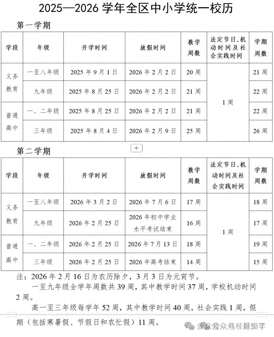 根据安排,全区各幼儿园、中小学2026年2月2日开始放寒假(高三年级2月9日放假),春季学期3月2日开学上课(初三、高三年级2月25日开学)。