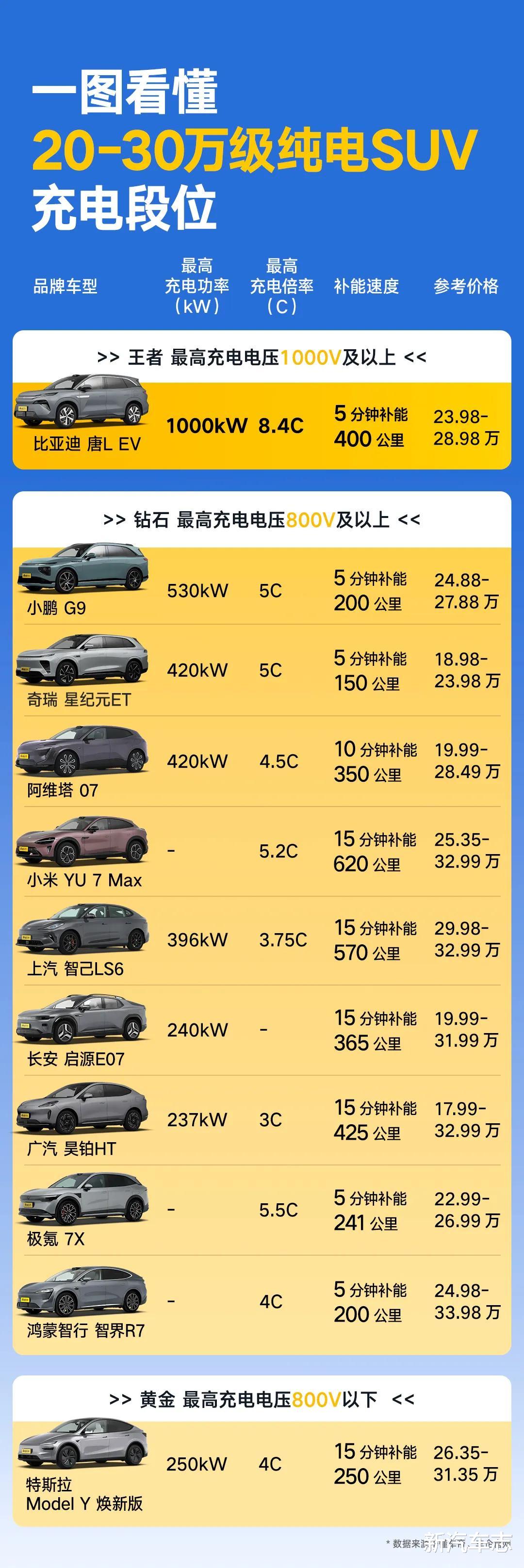 最引人瞩目的莫过于比亚迪宣称的“1000kW兆瓦闪充”。这个技术名词代表着目前量产电动车充电功率的顶尖水平。在理想条件下,即连接到专用的兆瓦级闪充桩时,官方和独立测试数据显示,唐和汉系列车型能在短短5分钟内补充约400公里的续航里程。这个距离概念相当于北京到天津,或者满足许多城市通勤者一周的行驶需求。将这个速度放入日常场景对比:它已经非常接近传统燃油车加油的平均耗时(算上排队等待约5分钟),甚至比买一杯现磨咖啡的等待时间(如瑞幸平均约6分钟)还要短。相较于市场上其他以快充著称的热门车型——例如特斯拉Model 3在超充桩上15分钟补充约250公里,小米SU7约11分钟补充510公里(测试条件不同结果会有差异)。