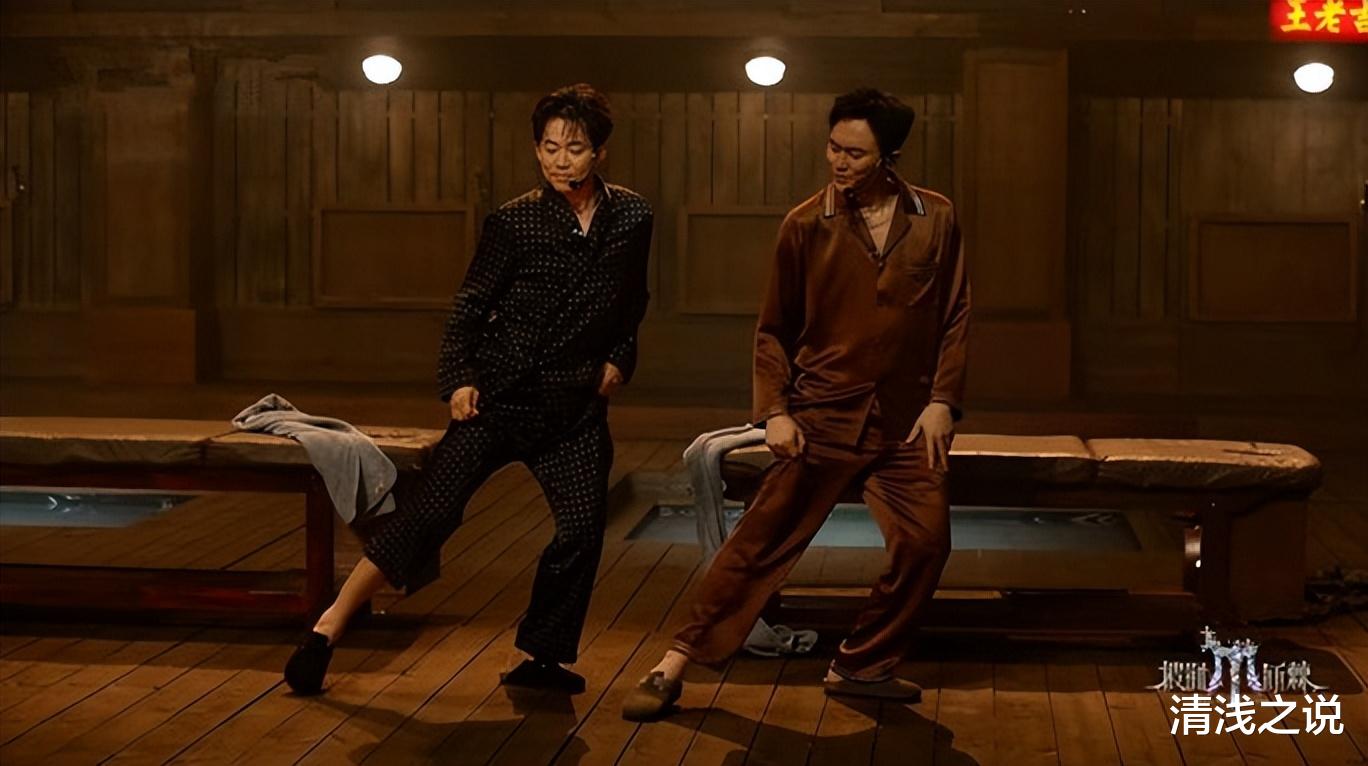 不过,这么个“难搞”的人把规则一改,综艺效果倒是不错的。而且这个“难搞”的人来到披哥,台下有时候着实是有点兴意阑珊,到了台上真的生龙活虎。之前喊着唱跳累,搞个一两次就好,结果四公又忘了一公的唱跳之苦,来个唱跳演舞台。他穿着睡衣和张智霖在台上表演《爱我的请举手》时真的太有精神了。