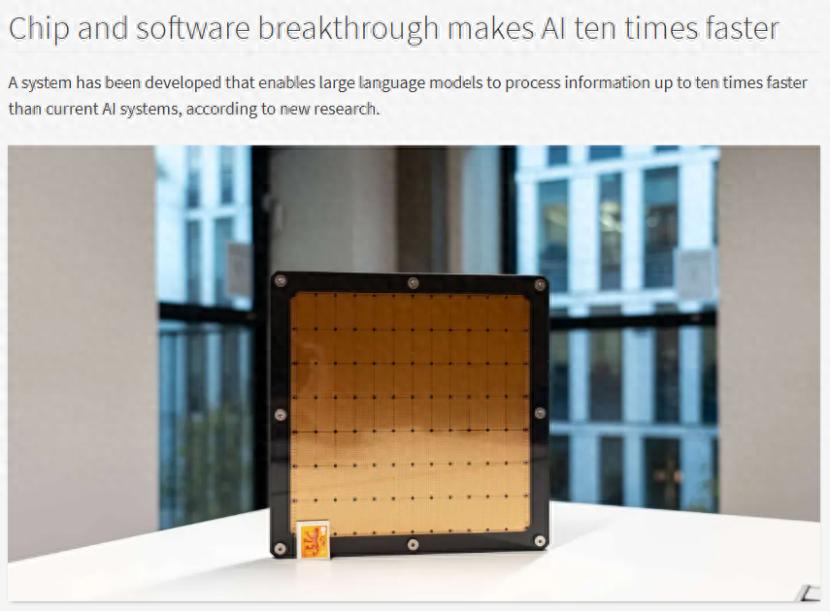 此次突破是与世界上最大的计算机芯片“晶圆级芯片”的处理器相结合实现的。这种性能加速可能对需要在毫秒级时间内实时生成新见解的行业产生重大影响,例如聊天机器人、金融、医疗保健和科学发现。