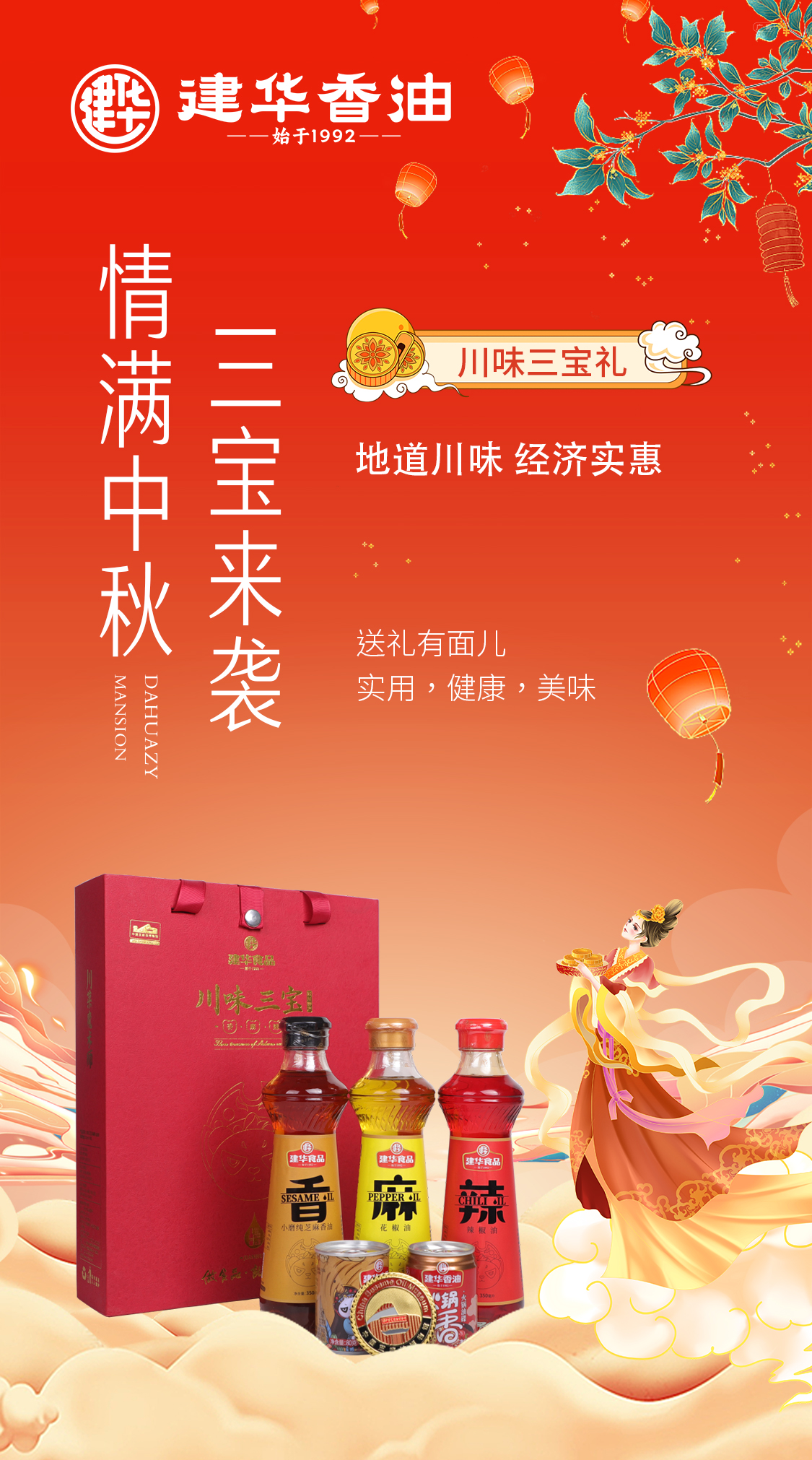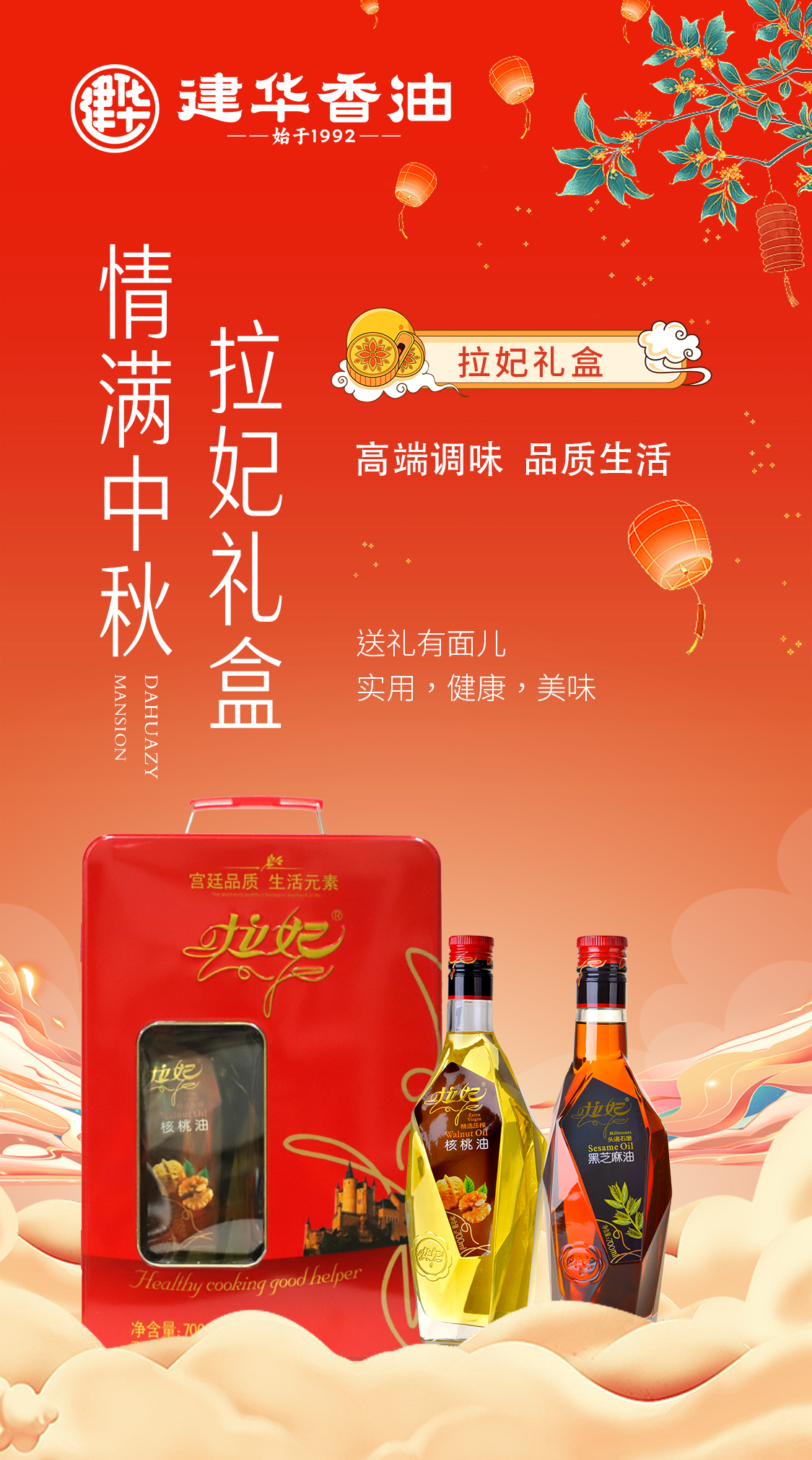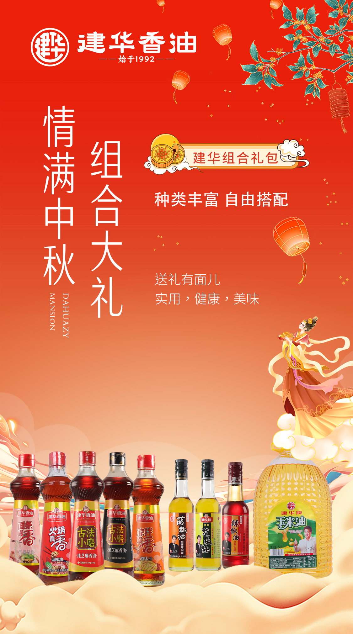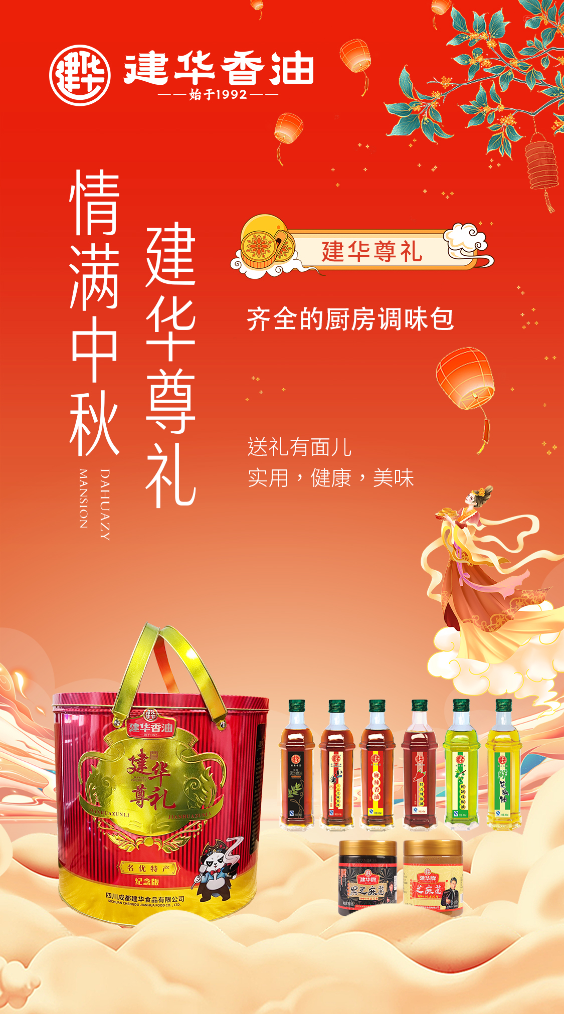 中秋佳节,金风送爽、月满人团圆。建华匠心独运的高端香油礼盒,种类丰富,满足烹饪需求,中秋送礼美观、大气,不脱俗套。