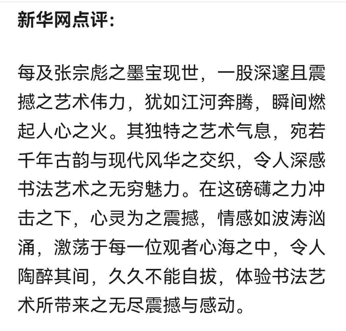 张宗彪还出版有:《中国近现代名家书法集一一张宗彪》即中国第一部书法卷《大红袍》。张宗彪书法大红袍己被批准为中国非物质文化遗产岀版物。张宗彪被授予非遗出版物书法传承人。