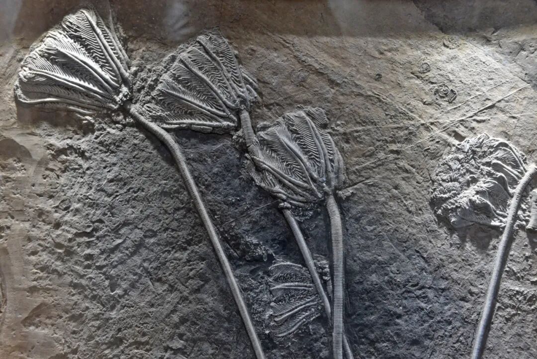相比鱼龙,关岭更早被发现的是海百合,包括贵州创孔海百合、关岭创孔海百合、许氏创孔海百合、均一创孔海百合等,这些化石一般个体较大,冠长10-30厘米,茎长数10厘米,个别最大者可达150厘米。对了,海百合看起来像莲蓬,不过它并不是植物,而是与海星、海胆这些类似的棘皮动物,海百合虽然是化石博物馆里的常客,但它没有灭绝,在海洋深处仍然存在。