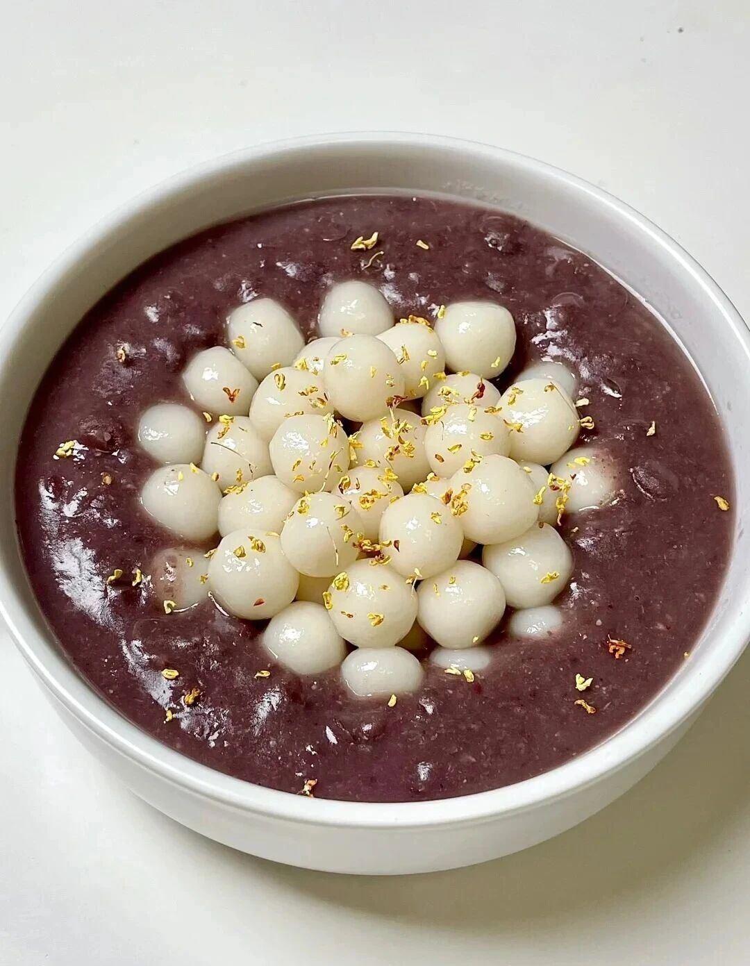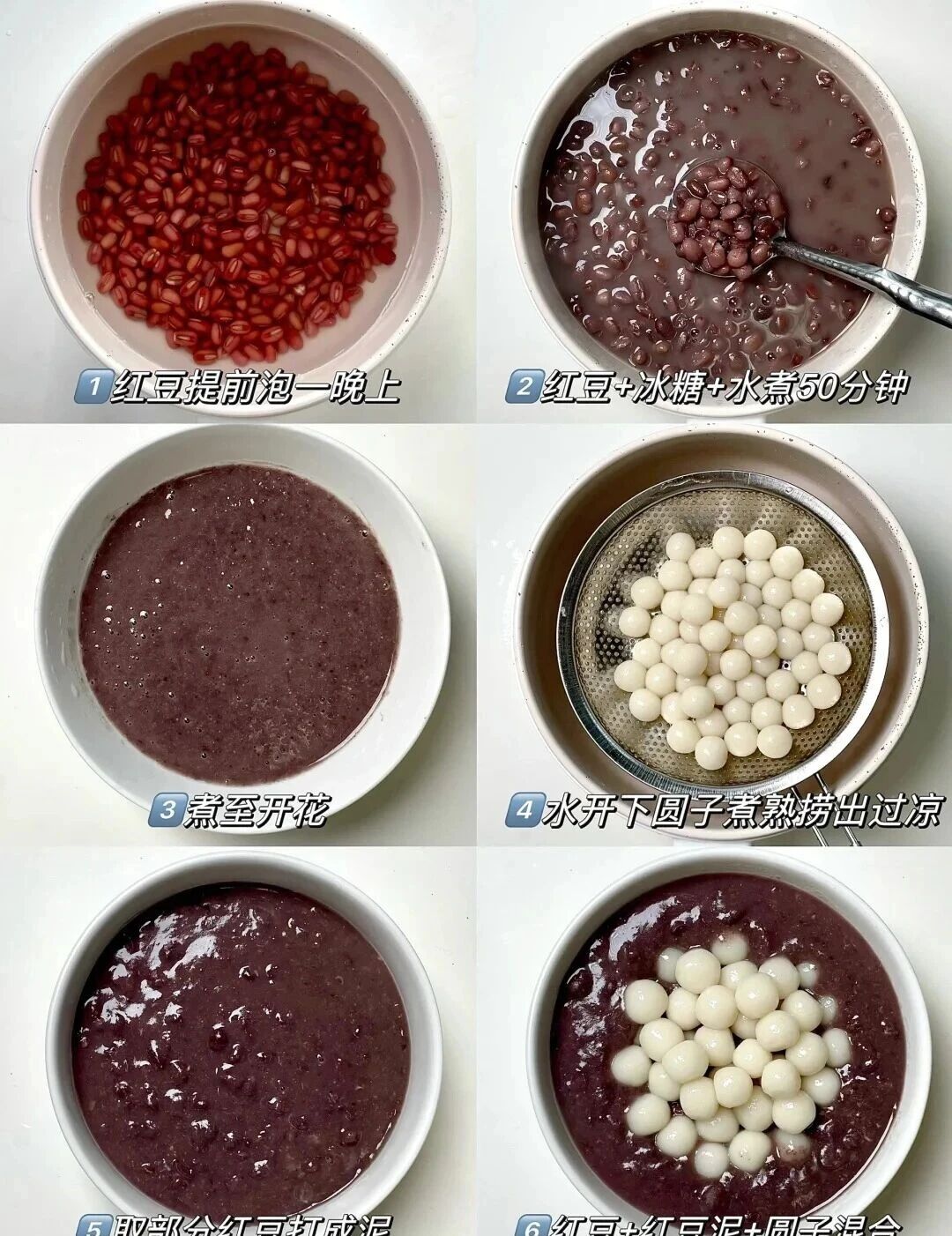 3. 取部分红豆连汤打成泥,与剩余红豆、小圆子混合即可。
