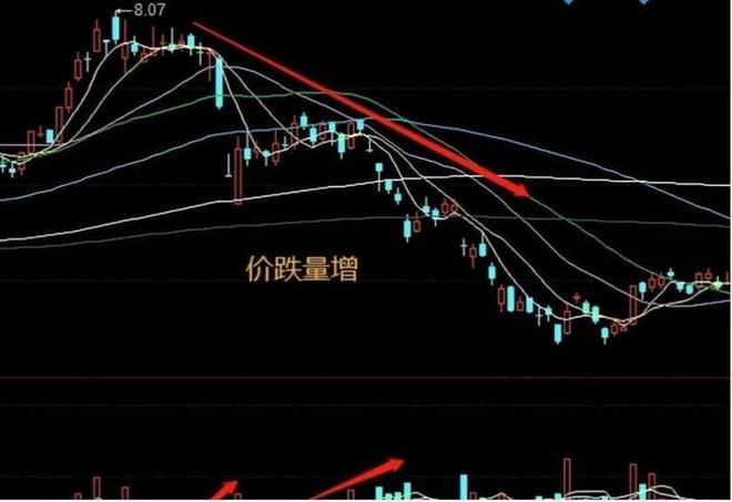 价跌量增应该是最简单的了,价格向下,同时成交量也在放大,这表明市场仍然是空头趋势,并且速度在加快。这个时候对交易者而言应该是先规避的,等待价格企稳。