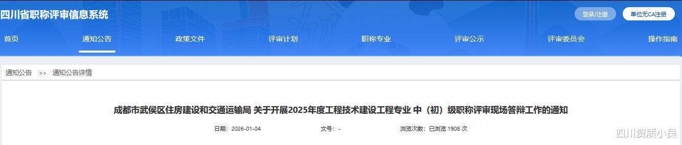 近日,成都市武侯区住房建设和交通运输局发布了“关于开展2025年度工程技术建设工程专业 中(初)级职称评审现场答辩工作的通知”。(原文附在文末)