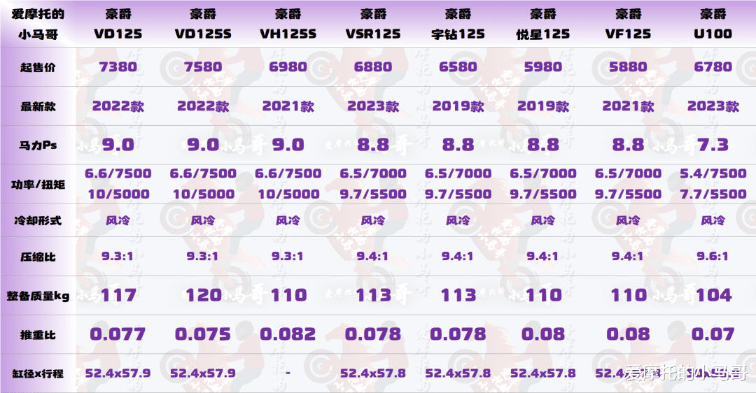 12月1日,豪爵又推出了一则关于旗下八款小踏板的价格调整公告,最高降幅800元,其中大部分都是125cc的车型,只有一款是100cc的小踏板,先放一下这次公告车型的售价及动力平台数据,方便大家快速了解: