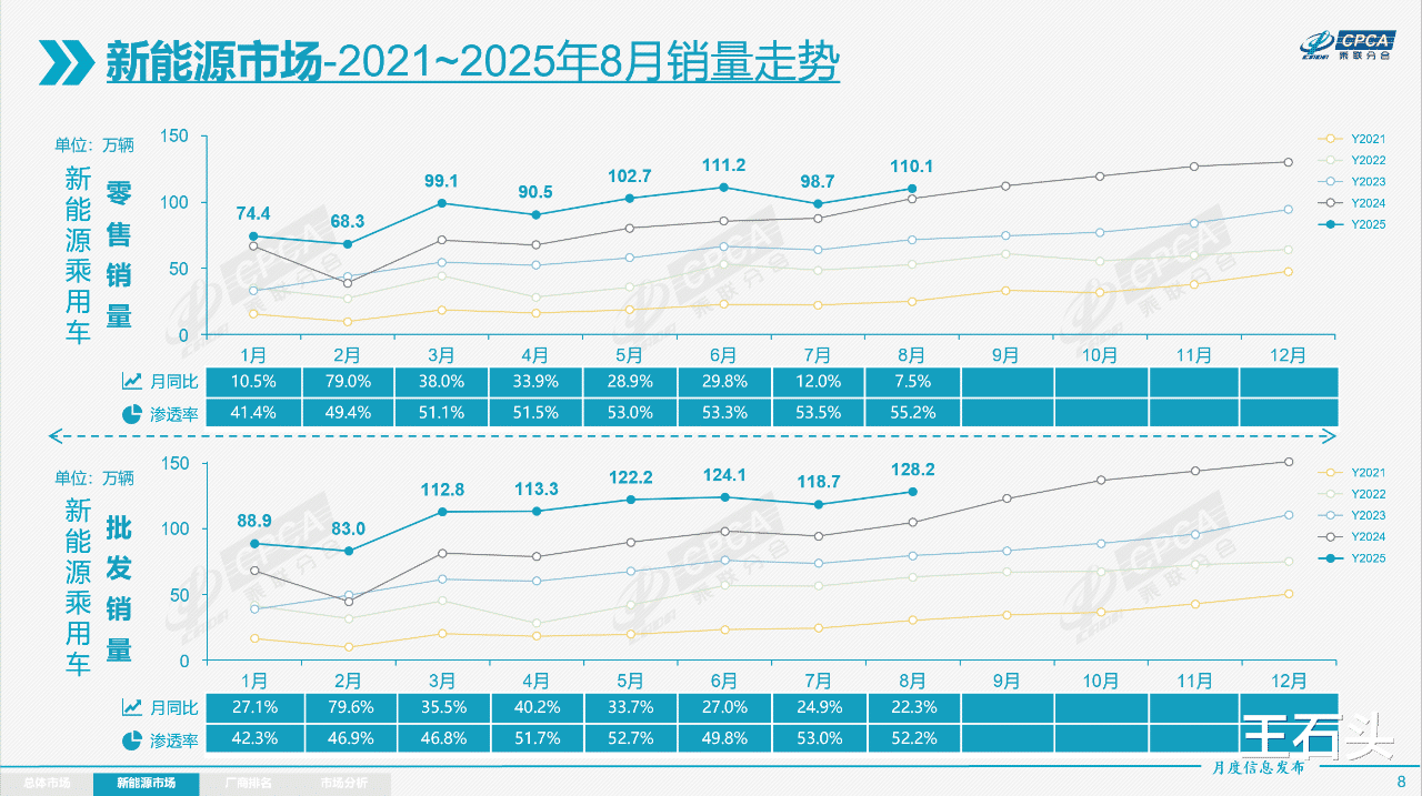 其中新能源汽车表现尤为抢眼,据中国汽车工业协会综合数据显示,2025年8月,中国新能源汽车零售渗透率攀升至55.2%,
