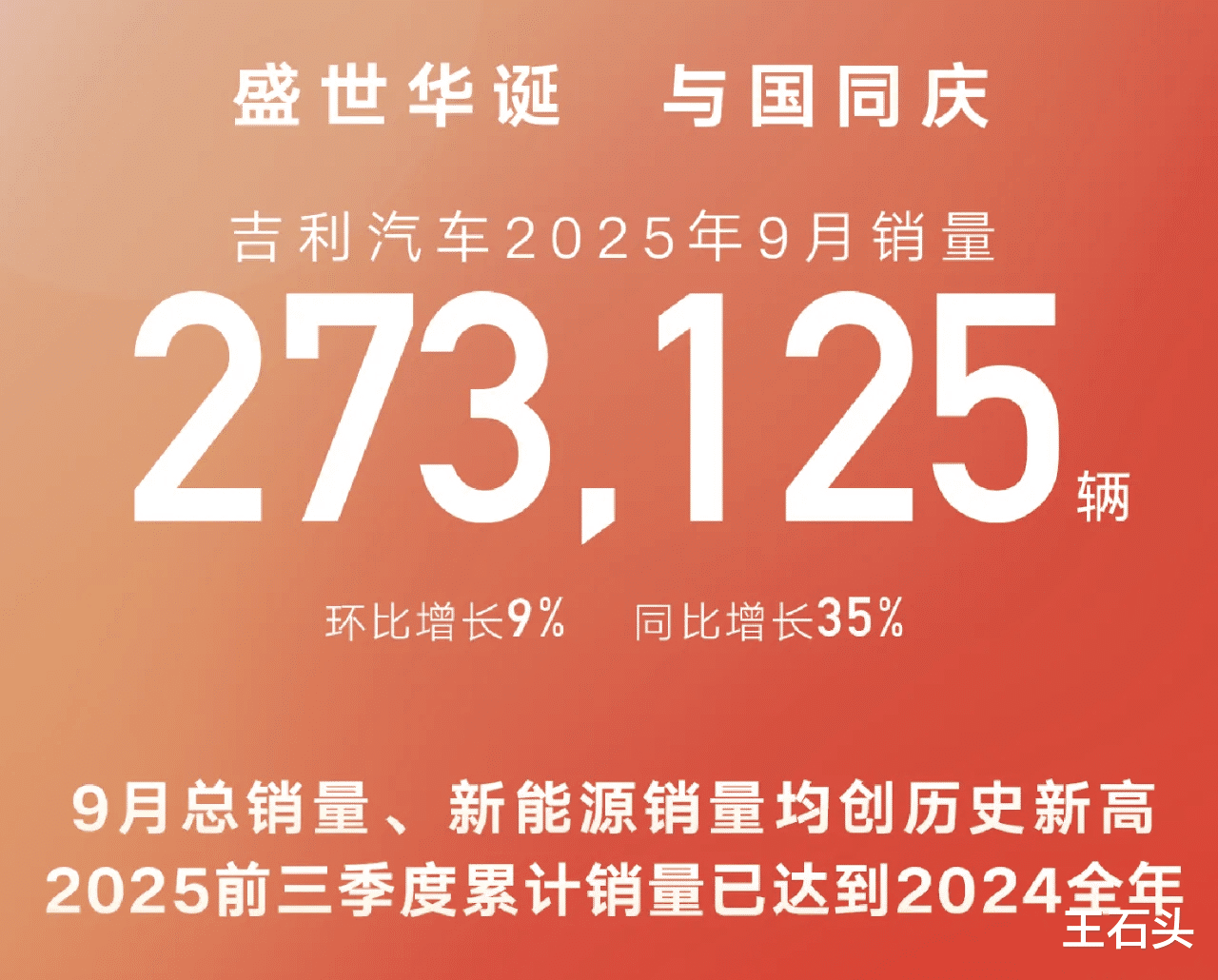 吉利汽车1-9月累计销量达217万辆,全年目标完成率高达72%,在销量前十车企中完成率位列第一。