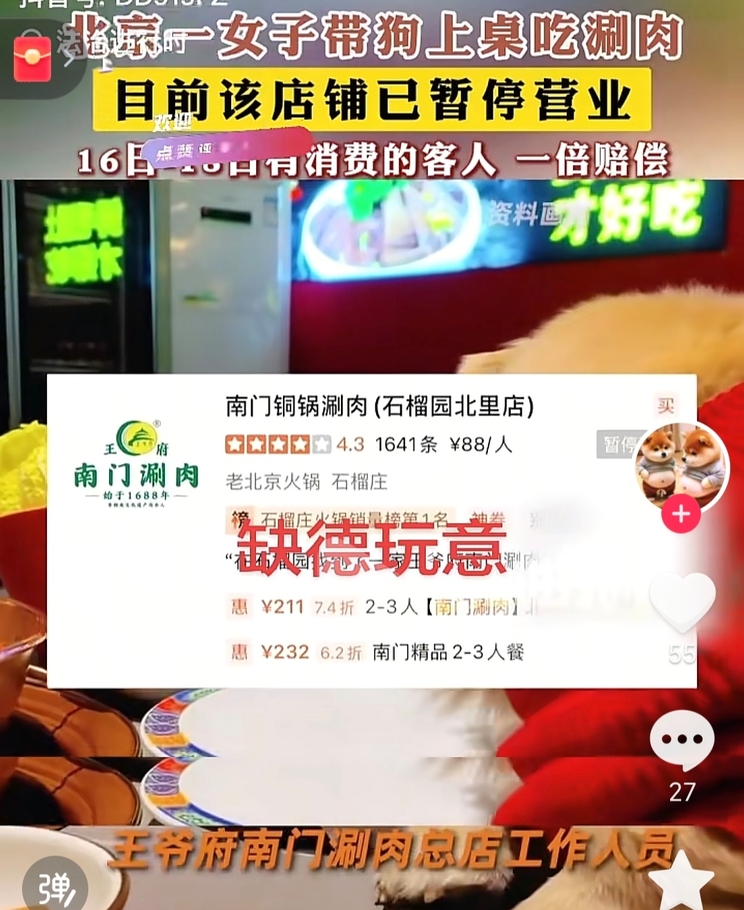 这件事发生在北京,是在12月16日的晚上,地址是北京王爷府南门一家涮肉店,当地女子领着一条大黄狗进了餐厅,服务员热情的招待了她,没想到给自己店带来了巨大的祸事。