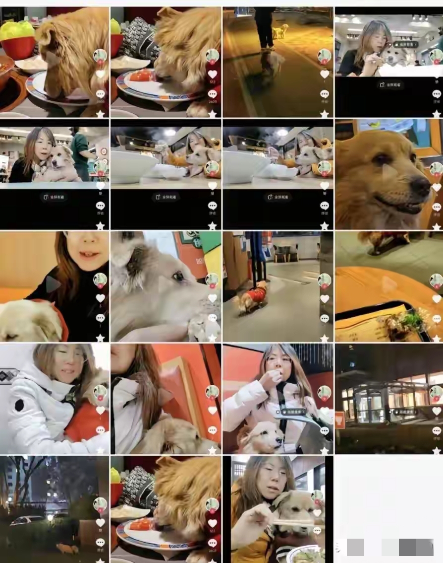 原来她不是第一次干这样的事情,她的抖音账号里20多条视频,都是带着狗出去吃饭的,都上了桌,有的用公筷喂狗,有的用公盘让它舔,真的太恶心了。