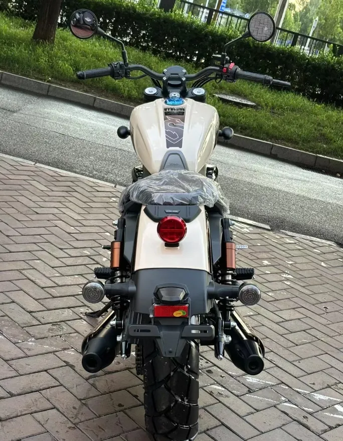 赛科龙RA401的外观设计无疑是其一大亮点。整车线条流畅,色彩搭配简洁大方,给人一种稳重而不失个性的感觉。水滴型油箱、双边双出排气、圆灯圆表等经典美式巡航元素一应俱全,让人一眼就能认出这是一辆地道的巡航车。同时,RA401在细节之处也展现了设计师的匠心独运,如大灯罩和大号前挡泥板的设计增加了前脸的厚重感,LED光源的大灯和尾灯则提升了照明效果和车辆的安全性。