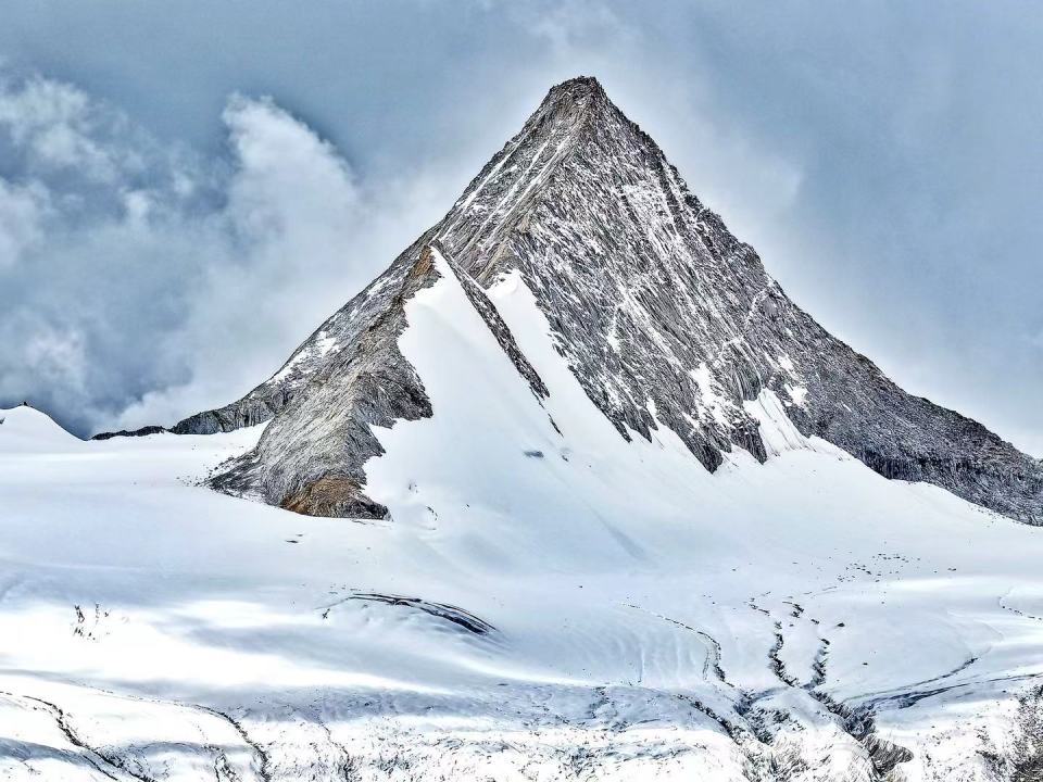 再近些,你便能看清王袍上的褶皱与纹章。那是由冰川运动刻下的深邃沟壑,像老人额头上刀刻般的皱纹,每一道都藏着古海退去、大陆崛起的秘密。黑色的岩壁在雪线以下裸露着,那是它卸下冰雪伪装后,最为坚硬的骨骼,带着一种饱经风霜的、不容置喙的威严。偶尔,你会听见远方传来一声沉闷的巨响,那是雪崩的声音——是这位国王在沉睡中,一次不经意的翻身。