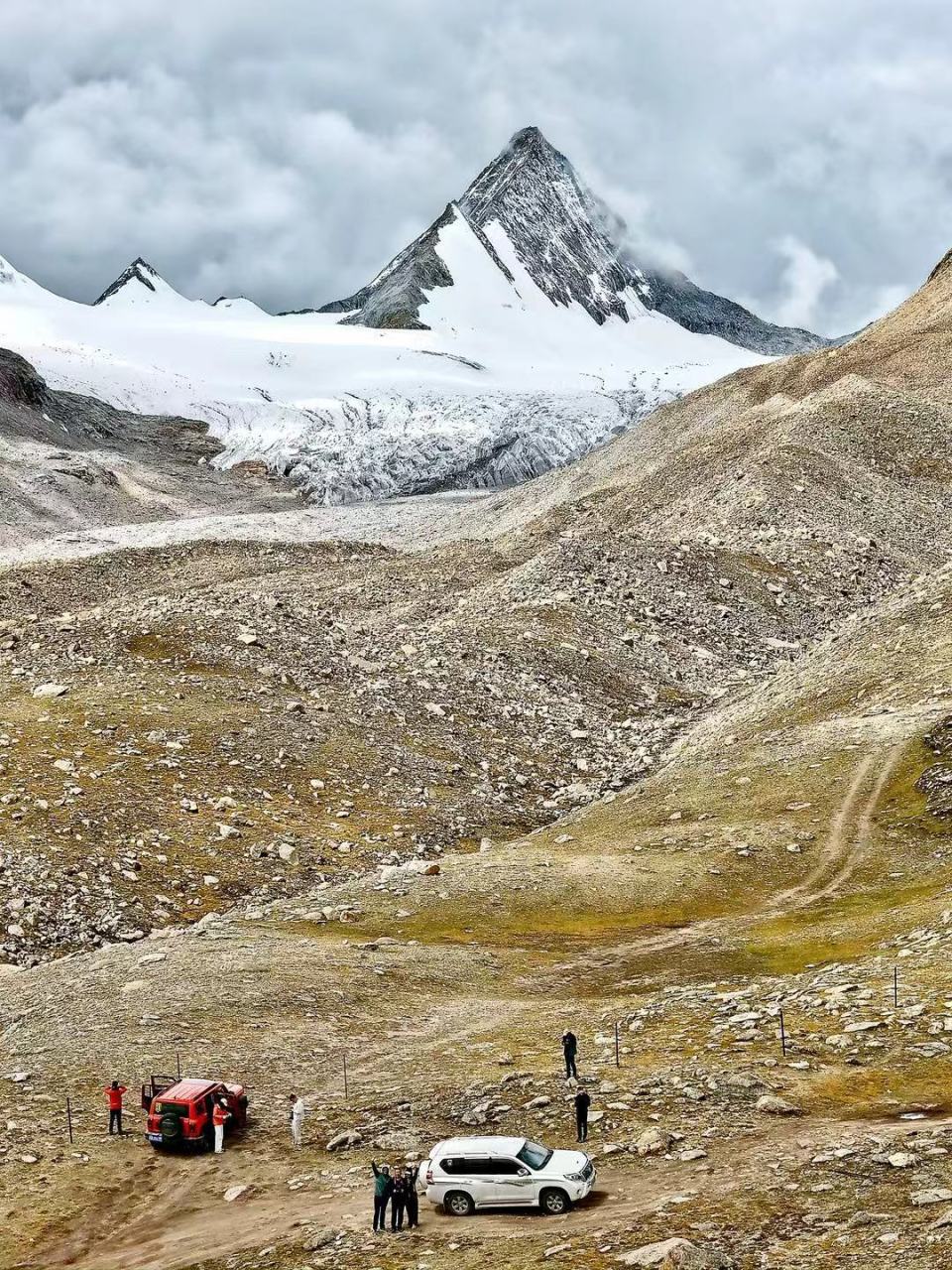 沙琅国王峰——当地牧民这样称呼它。当你从荒原尽头出现,第一眼望见它时,会突然明白,为什么这座雪山配得上“国王”的名号。它不是群山中最高的,却是最孤傲的。金字塔状的山体从海拔4600米的高原上拔地而起,陡峭的岩壁覆盖着万年不化的冰雪,在稀薄的空气中闪烁着银质的光芒。峰顶常常缠绕着几缕流云,像是国王偶尔撩开的面纱,矜持而威严。