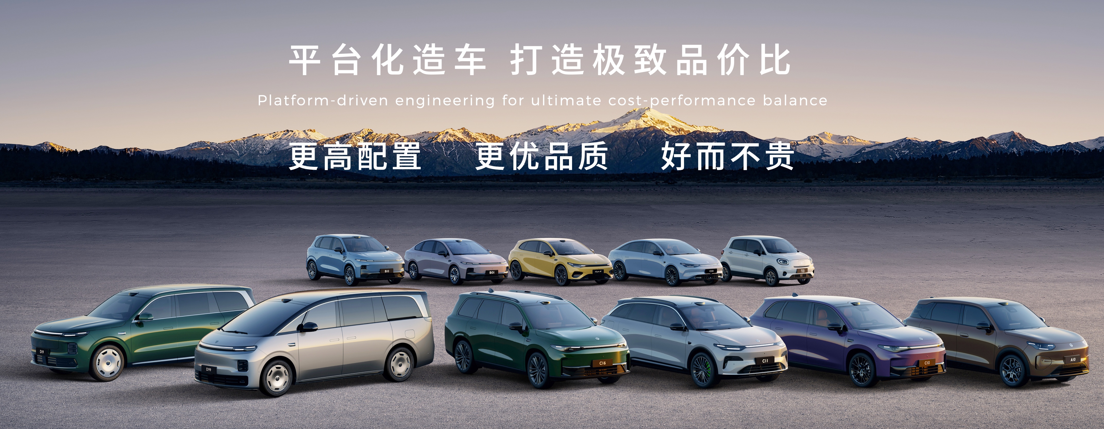 而在新能源渗透率持续提升、汽车消费逐渐趋于理性背景下,零跑坚持好而不贵产品理念,基于全域自研技术实力,打造了在30万以内市场极具竞争力的产品矩阵。零跑完成了ABCD四大系列以及Lafa5的产品布局,形成包含轿车、SUV、MPV在内的多元化产品阵容,实现了从A0级到D级全维度覆盖,更提供纯电和增程双动力选择。经典C系列车型凭借越级产品力持续领跑细分市场,其中C10销量已达到月销2万辆的新高度;年内推出全新B系列B10、B01以及Lafa5,真正做到上市即热销;旗舰D系列首款车型D19、智能精品A系列首款车型A10,亮相阶段收获用户满满期待。