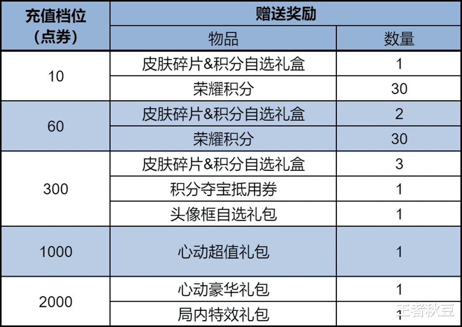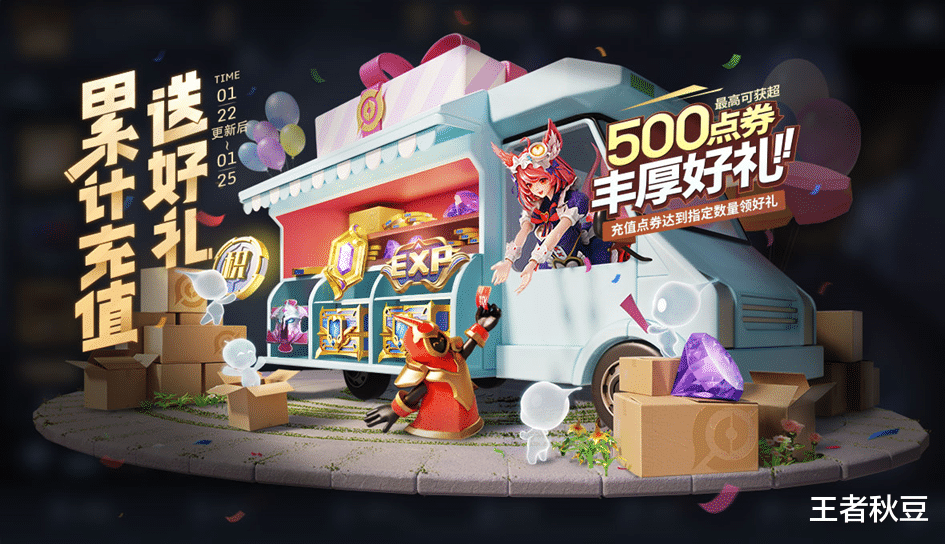 充值时间为1月22日-1月25日,共持续4天时间,充值最低10点券,最高2000点券。充值1000点券就能购买王昭君的FMVP皮肤了。还能获得相应的积分和皮肤碎片礼盒。