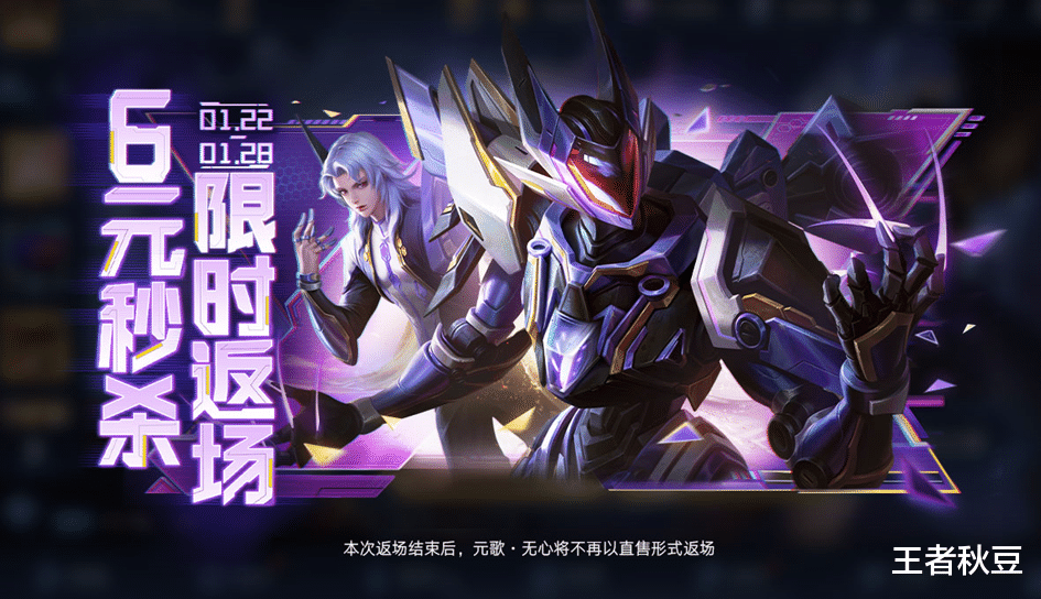 元歌源梦皮肤无心将于1月22日-1月28日限时返场,通过60点券限时秒杀。本次返场后,后续将不再以直售方式返场,以后想要就只能抽奖返场。源梦系列性价比高,60点券买入史诗品质还是非常值得。