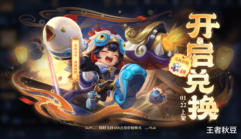 鲁班七号-班班快跑定位为勇者品质皮肤,将于1月22日更新后上架商城,可以通过48皮肤碎片兑换,也可以通过488点券购买。
