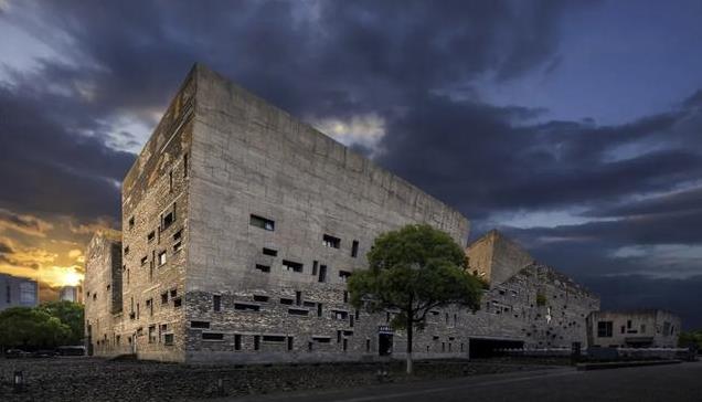 自天一广场往南约半小时车程处,便是气势磅礴的“灰盒子”建筑群——宁波博物馆。这座博物馆是王澍“新乡土主义”建筑的典型代表,外墙上使用了宁波旧城改造留下的大量砖瓦,还运用江南特色的毛竹在墙面制造出独特的肌理效果。
