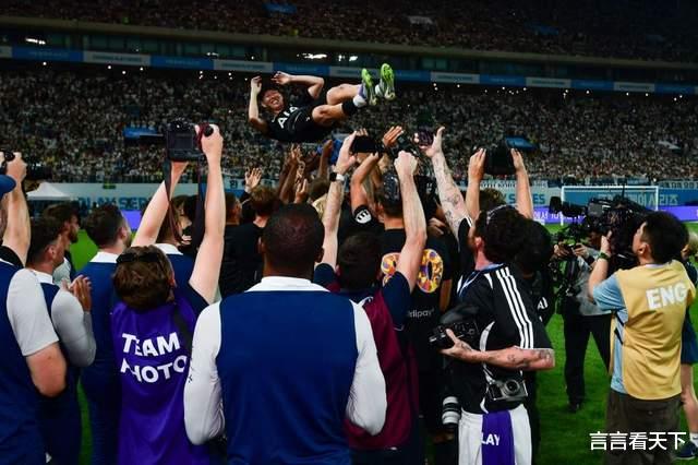 周日,在韩国首尔举行的托特纳姆热刺队与纽卡斯尔联队季前友谊赛结束后,孙兴慜被抛向空中。