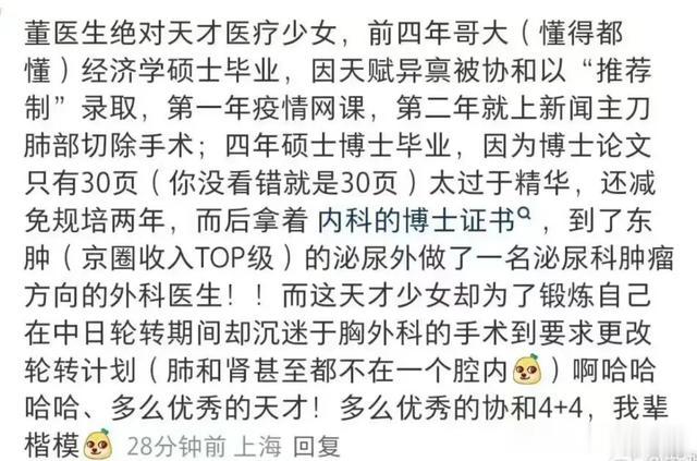 与此同时,董袭莹的“开挂式”医学履历被深挖。她本科毕业于哥伦比亚大学巴纳德学院经济学专业(非哥大本部),却通过协和医学院4+4项目的用了四年获得了医学博士学位。