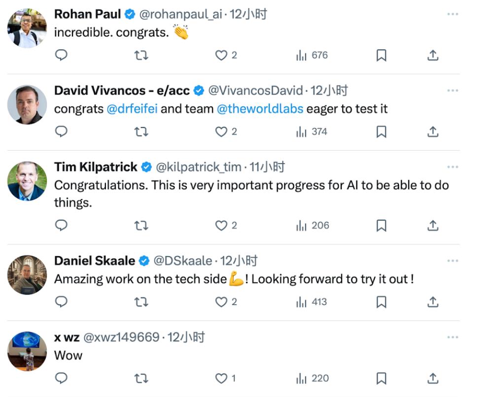 在李飞飞的推文下,很多网友都觉得这个模型的DEMO效果非常惊艳。