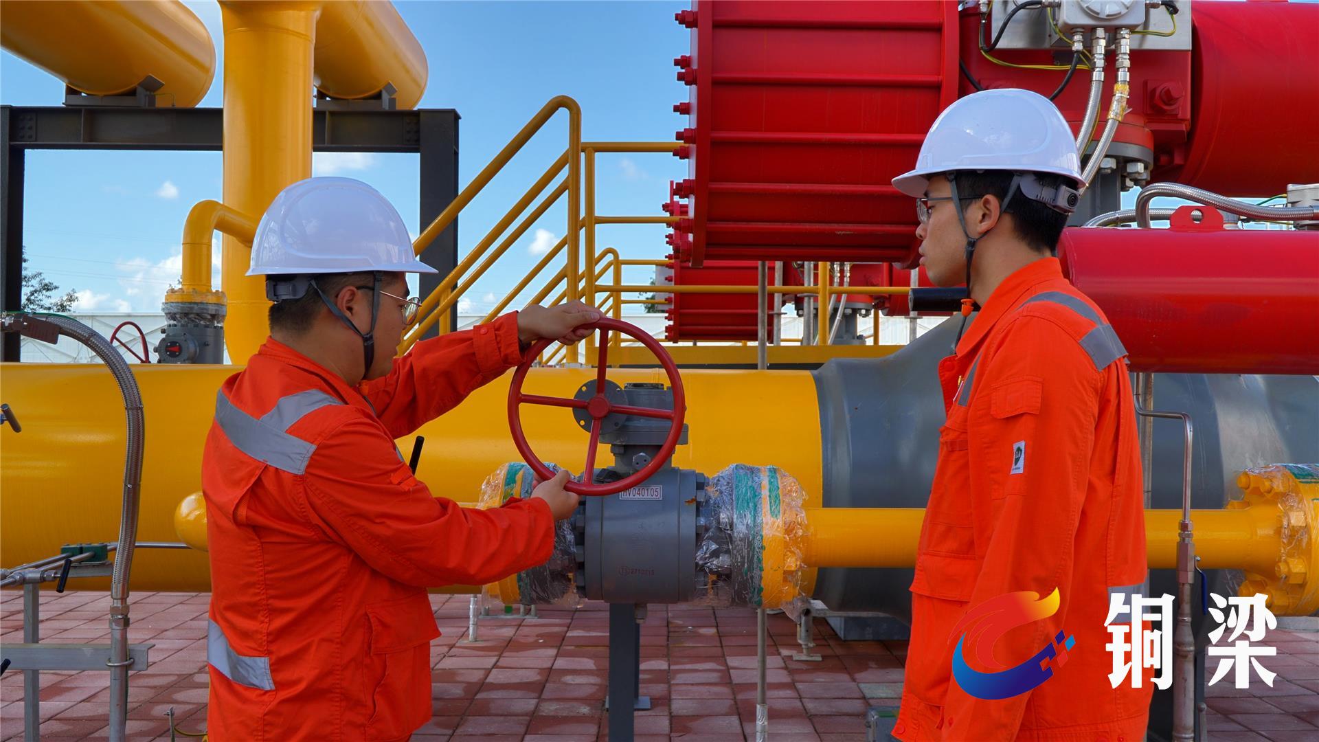 “接北调指令,现在可以打开HV040105,正式进行通气。现在开阀。”随着现场操作指令的下达,铜梁压气站增压外输工作有序启动。